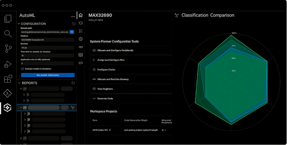 Pour les aider à gérer ces contraintes, Analog Devices a donc codéveloppé AutoML for Embedded avec Antmicro en vue de rendre les applications d'IA embarquées à la fois plus accessibles, efficaces et évolutives. En d’autres termes, il s'agit de pouvoir créer et déployer des modèles d'apprentissage automatique robustes, en particulier sur des microcontrôleurs, sans avoir à gérer un code complexe ni des contraintes matérielles.