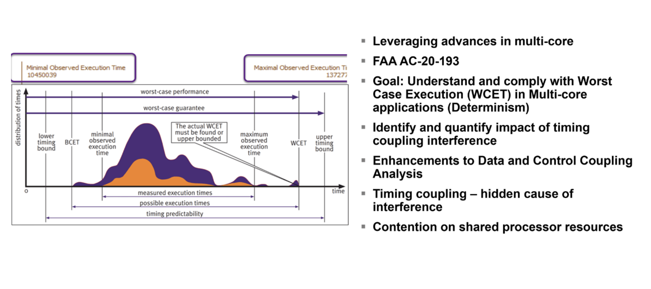 Celle-ci décrit les facteurs susceptibles d'augmenter les temps d'exécution dans les systèmes multicœurs. Lorsque ces temps d'exécution dépassent les limites du pire des cas, les systèmes peuvent devenir non déterministes et non sécurisés.