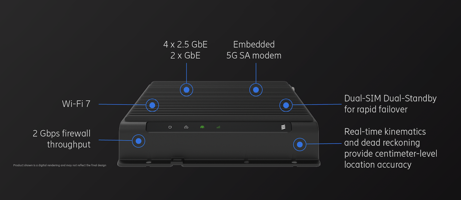 L’originalité de cet équipement est d’être doté pour la première fois dans l’industrie, selon Ericsson, d’une technologie Dual SIM/Dual Standby (DSDS), d’une géolocalisation à l’échelle du centimètre, d'une connexion Wi-Fi 7 et d’une IA embarquée (edge AI).
