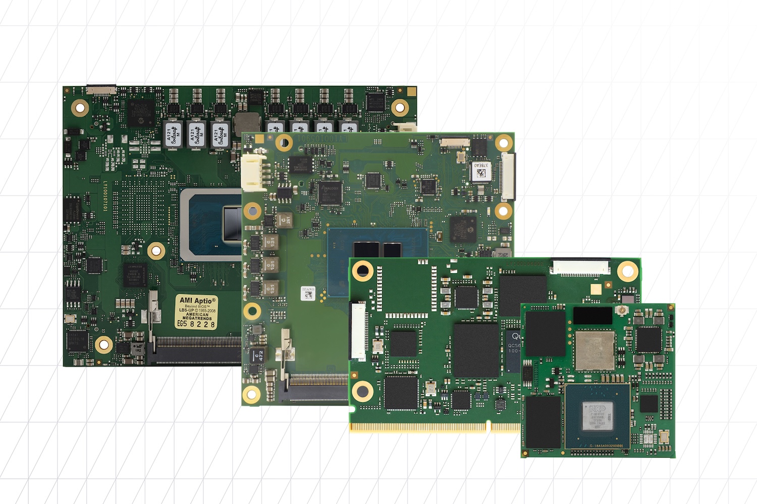 L’architecture COM (Computer On Module) est particulièrement populaire, car elle allie la simplicité d’un module de calcul standard à la flexibilité de pouvoir créer une carte support personnalisée pour répondre aux besoins d’une application. Introduit par le PICMG (PCI Industrial Computer Manufacturers Group), le standard COM Express a servi de base aux standards ultérieurs qui appliquent le concept COM, et permet d’étendre les entrées/sorties autour d’un cœur de calcul.