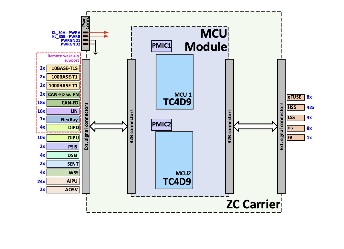 Il s’agit d’un équipement de conception modulaire d’unités de contrôle de zone (ZCU, Zone Control Unit) qui adopte une approche évolutive reposant sur des composants réutilisables, avec une combinaison possible jusqu’à une trentaine de modules uniques.