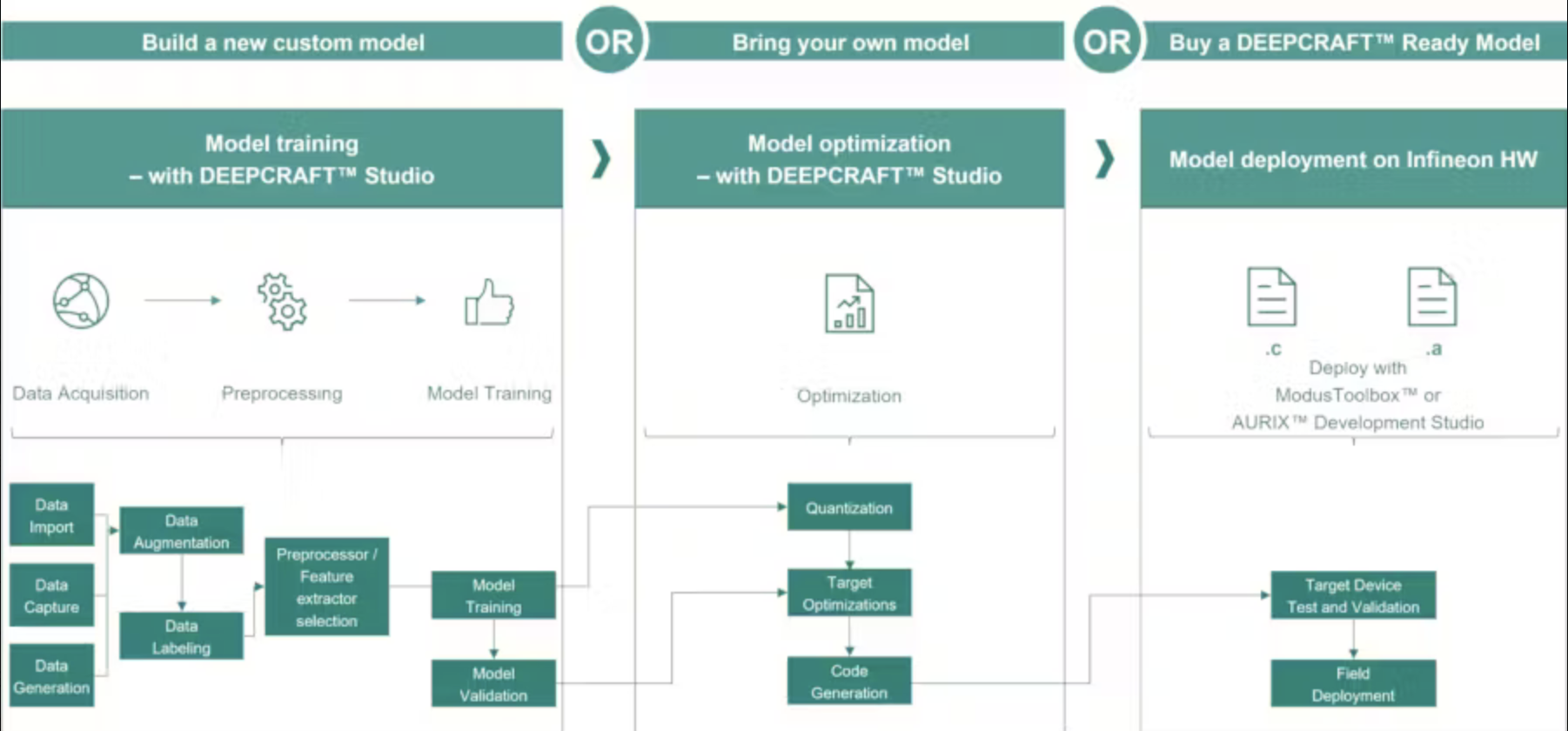 Pour rappel, Deepcraft Studio procure aux développeurs une plate-forme complète pour le développement de modèles robustes d'IA et de machine learning (apprentissage automatique) destinés à une utilisation en périphérie de réseau (Edge AI). Celle-ci permet de créer des modèles prêts à l'emploi dans des produits commerciaux et utilisables gratuitement avec le matériel d’Infineon.