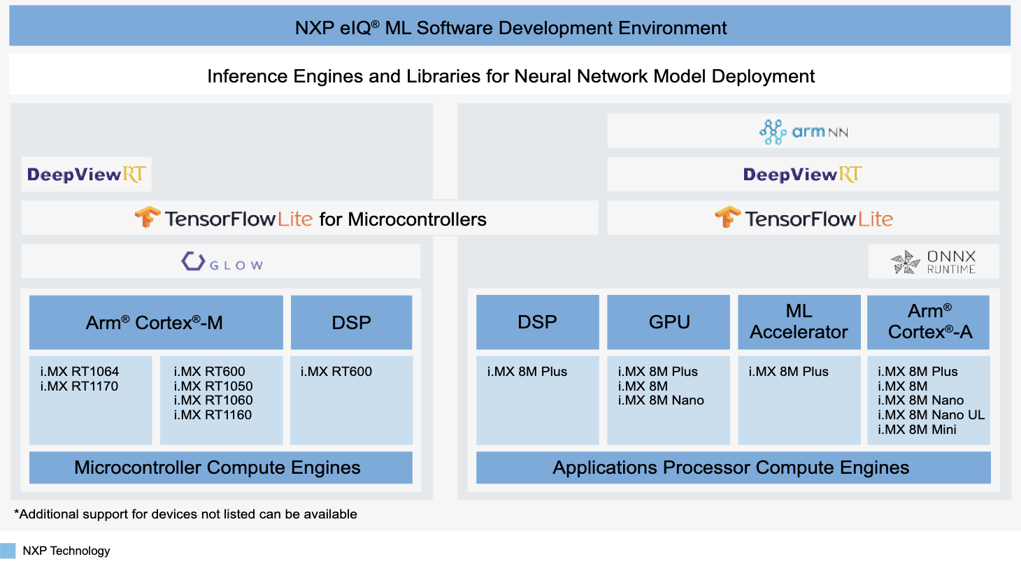 Par exemple, les développeurs peuvent réaliser la migration de modèles installés dans le cloud vers une exécution déterministe à faible latence en périphérie du réseau. Et ce en s’appuyant notamment, côté matériel, sur les processeurs d'applications i.MX 8 et i.MX 9 ainsi que sur les unités de traitement neuronal discret Ara.