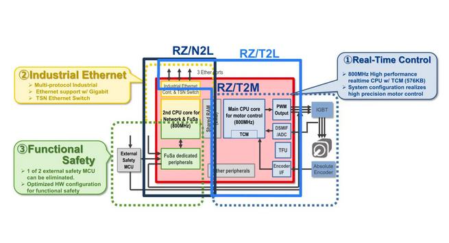 Le fournisseur de semiconducteurs Renesas Electronics annonce la mise à disposition pour les développeurs qui travaillent sur ses microprocesseurs des séries RZ/T et RZ/N de la pile logicielle certifiée Profinet-IRT et PROFIdrive destinée aux réseaux industriels. Les premières versions de ce logiciel sont d’ores et déjà disponibles pour les processeurs RZ/T2M, à double coeur Arm Cortex-R52, conçus pour les applications de contrôle de servo moteurs, et pour les RZ/N2L, circuit complémentaire centré sur la gestion des communications, destinés aux applications de passerelles Internet industrielles, comme les systèmes d’entrées/sorties à distance ou les dispositifs Ethernet industriels.
