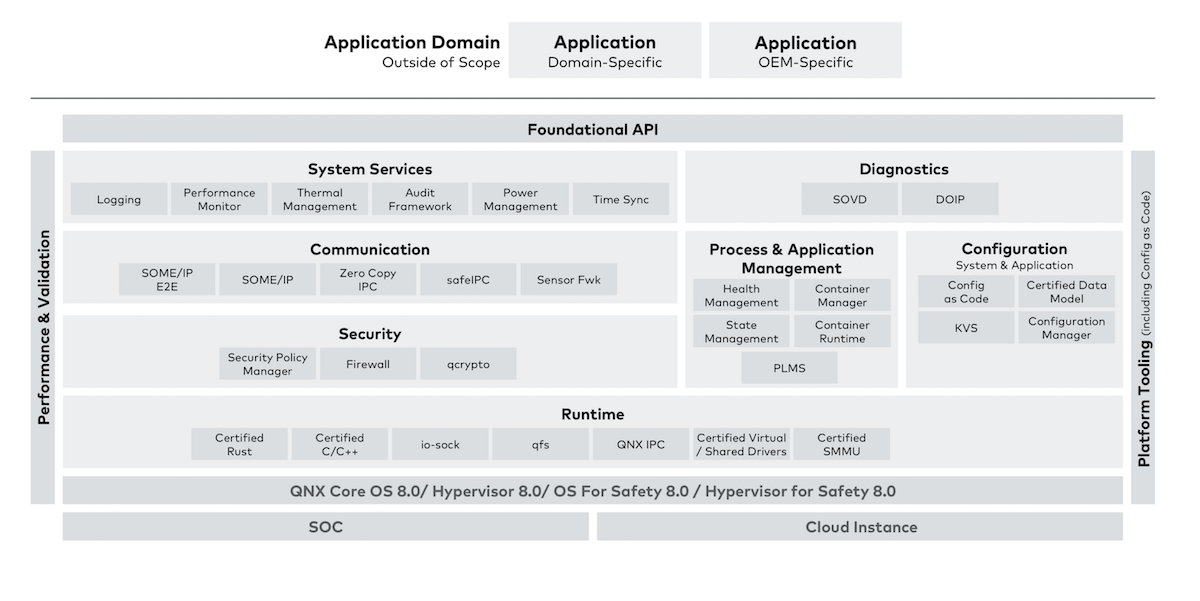 La plateforme combine ainsi le système d'exploitation et la virtualisation certifiée au niveau sécurité de QNX avec l'intergiciel sécurisé de Vector, afin d’obtenir une base évolutive pour le déploiement d'applications dans l'ensemble du véhicule.