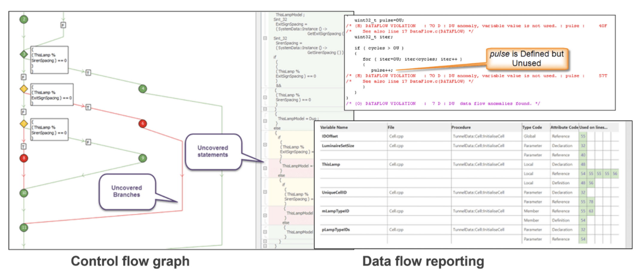 Enfin, la suite supporte la notion de traçabilité des exigences de sécurité, les tests de corruption de mémoire, la couverture de code et tests de chemin d’accès, l’analyse des flux de données et de contrôle, l’analyse du couplage des données et du couplage de contrôle, l’analyse de la contamination du code et la vérification de la concurrence.