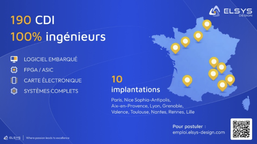 La société d’ingénierie Elsys Design, filiale d’Advans Group, renforce ses équipes et prévoit de recruter 190 ingénieurs en systèmes embarqués sur 10 villes françaises.