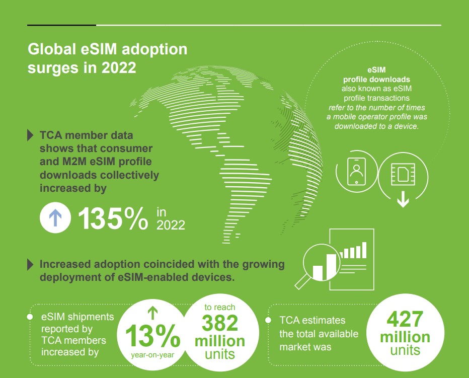 Les téléchargements de profils eSIM M2M ont augmenté de 148% en 2022 grâce à l'automobile et les services publics[EDITION ABONNES] Selon la Trusted Connectivity Alliance (TCA), l’adoption de la technologie eSIM a fortement progressé en 2022 avec une augmentation de 13% des ventes en volume d’eSIM à hauteur de 382 millions d’unités, d'après les données fournies par les membres de l’organisation industrielle (qui estime le marché total à 427 millions d’unités). Dans le même temps, la TCA constate que les téléchargements de profils eSIM for Consumer et eSIM M2M (*) ont augmenté collectivement de 135%. Pour l’alliance TCA, l’eSIM est une SIM généralement soudée capable d’héberger différents profils de connectivité tels que définis par la GSMA et d’accepter un provisionnement sécurisé over-the-air et des mises à jour à distance des clés et des applications. Et ce tout au long de la durée de vie d’un terminal ou d’un objet connecté. Selon la Trusted Connectivity Alliance, l’'augmentation du niveau d’adoption de l'eSIM dans le domaine grand public reflète le lancement de modèles de smartphones uniquement eSIM en 2022 par les grands fabricants de téléphonie mobile, les téléchargements de profils eSIM grand public ayant augmenté de 130% en 2022. Les cas d'usage dans les domaines de l’industriel et des communications de machine à machine M2M jouent également un rôle de prime importance pour l'adoption de l'eSIM. Selon les données des membres de la TCA, les téléchargements de profils eSIM M2M ont augmenté de 148%, notamment grâce aux secteurs de l'automobile et des services publics. Plus globalement, la croissance de l'adoption de l’eSIM dans le domaine grand public a été soutenue par d'importants investissements dans les plates-formes eSIM Subscription Manager (SM), qui permettent le provisionnement et la gestion du cycle de vie à distance des eSIM. Le nombre de plates-formes eSIM SM à destination du secteur grand public déployées a ainsi augmenté de 29% en 2022, les opérateurs mobiles s'efforçant de plus en plus d'offrir une valeur accrue grâce à des processus d’inscription et d’activation sans couture, des expériences entièrement numérisées et une personnalisation poussée, précise l'alliance TCA. « Au fur et à mesure que l'eSIM se développe, l’impact d’une éventuelle fragmentation du marché et de problèmes d'interopérabilité augmente également, prévient Claus Dietze, président du conseil d’administration de la TCA. En tant qu'organisation qui compte parmi ses membres les principaux fournisseurs de puces et de services eSIM, notre organisme s'est donc engagé à travailler avec des partenaires de l'ensemble de l'industrie pour façonner l'évolution de la technologie grâce à des spécifications et des programmes ad hoc. » Parmi ces initiatives clés, l’organisme cite le Service d'interopérabilité eSIM (TCA eSIM Interoperability Service) fourni par la société Comprion qui permet aux opérateurs de vérifier, avant déploiement et de manière proactive, que leurs profils eSIM sont compatibles avec une large gamme de terminaux disponibles dans le commerce. L’alliance TCA continue également de faire évoluer et d'améliorer la spécification Interoperable Profile Package, qui couvre le processus de chargement à distance des abonnements mobiles dans les eSIM présentes dans les terminaux et qui est mise en œuvre dans chaque eSIM déployée sur le terrain. En outre, l'organisation affirme avoir largement contribué au développement des récentes spécifications eSIM IoT de la GSMA (voir notre article). (*) Pour des informations détaillées sur les spécifications eSIM M2M et eSIM for Consumer, lire notre entretien avec Romain Durand, cofondateur et directeur de l’innovation de la société Transatel