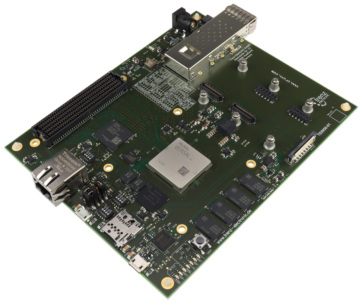iWave et Trenz installent le puissant FPGA Versal AI Edge d’AMD-Xilinx sur un module processeur et une carte d’évaluation[EDITION ABONNES] Désormais livrés en nombre depuis la fin de l’année dernière, les circuits Versal AI Edge d’AMD-Xilinx bénéficient d’ores et déjà de structures d’accueil pour démarrer des projets. Ainsi la firme indienne iWave Systems et la société allemande Trenz Electronic proposent, pour l’une, un module processeur et, pour l’autre, une carte d’évaluation architecturés autour de ce puissant circuit de traitement de données, orienté vers les applications d'intelligence artificielle (IA) en périphérie de réseau (edge). Présenté pour la première fois en mars par iWave lors du salon Embedded World 2023, le module processeur référencé iW-Rainbow-G57M est compatible avec une série de puces Versal AI Edge (VE2302/VE2202/VE2102/VE2002). Aux dimensions de 50 x 60 mm, cette carte SOM (System On Module) dispose de 8 Go de mémoire RAM LPDDR4, d’une mémoire eMMC de 128 Go et d’une flash QSPI de 256 Mo. Deux connecteurs d'extension haute vitesse et 122 entrées/sorties configurables par l'utilisateur complètent l’ensemble. Le module prend aussi en charge des blocs émetteurs-récepteurs haute vitesse de 28,21 Gbit/s pour la gestion des protocoles à haut débit, ainsi que l’Ethernet 40G, le PCIe et l’interface Mipi pour les capteurs de vision, indispensables pour l'IA avancée.