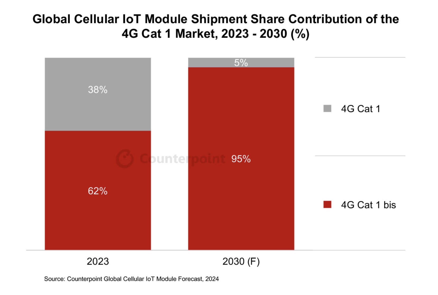 Applications IoT massives : les connexions en 4G Cat 1 bis remplaceront près de 95 % du marché de la 4G Cat 1 d'ici 2030[EDITION ABONNES] Selon le rapport “Global Cellular IoT Module Forecast” de la société d’étude counterpoint, le marché de la connectivité cellulaire 4G Cat 1 bis connaît une croissance rapide car il comble le fossé entre les réseaux LTE à haut débit et les besoins de connectivité IoT généralistes. Pour rappel, la 4G Cat 1 bis est une évolution de la technologie LTE Cat 1 qui prend en charge les appareils IoT cellulaires économiques et à faible consommation d'énergie avec des débits de données adaptés à une large gamme d'applications. Cette technologie se distingue par la possibilité de conceptions plus simples à une seule antenne de réception(Rx) ce qui la rend attrayante pour les appareils IoT plus petits et alimentés par batterie dans des secteurs tels que le suivi des actifs, les compteurs intelligents et l'IoT industriel. Le LTE Cat-1bis a été introduit en 2016 dans la Release 13 des spécifications 3GPP. Toutes les autres caractéristiques du LTE Cat-1, telles que les débits de données (10 Mbit/s en réception, 5 Mbit/s en émission) et les protocoles des liaisons montante et descendante, restent les mêmes. Cette expansion du marché de la 4G Cat1 bis est stimulée, selon counterpoint, par la généralisation à grande écehlle d’appareils connectés, le besoin en solutions de connectivité de milieu de gamme LTE fiables et l'élimination progressive dans le monde des réseaux 2G et 3G. Dans ce contexte, counterpoint indique que les principaux acteurs se concentrent sur la mise à l'échelle de l'infrastructure, l'amélioration de la conception des modules et la garantie de la compatibilité avec les réseaux 4G existants, ce qui alimente encore davantage l'adoption. Parallèlement, le développement de chipset spécifiques à la 4G Cat 1 bis, comme ceux de Qualcomm, a permis de réduire la consommation d'énergie et les coûts des composants. Alors que les applications IoT prolifèrent à l'échelle mondiale, le marché de la 4G Cat 1 bis devrait donc jouer un rôle central pour répondre aux exigences de connectivité tout en apportant un équilibre entre performances et coûts. Ainsi, selon counterpoint, alors qu’en 2023 la Chine dominait le marché de la 4G Cat 1 bis avec une part de marché de 87 %, d’ici 2030, les marchés hors Chine représenteront environ 60 % des expéditions totales de systèmes de connexion 4G Cat 1 bis. Les compteurs intelligents, les terminaux de point de vente, le suivi des actifs, les capteurs industriels et les appareils portables devraient ainsi représenter plus de 70 % des expéditions totales de module 4G Cat 1 bis d'ici 2030 qui remplaceront près de 95 % du marché de la 4G Cat 1 d'ici 2030. Selon counerpoint, la 4G Cat 1 bis devrait donc devenir être un choix populaire pour de nombreuses applications IoT cellulaires en raison de son coût attractif - les modules étant actuellement 40 % moins chers que ceux pour la 4G Cat 1 - d'une meilleure itinérance du réseau par rapport aux autres options de connectivité, évitant les défis rencontrés par le NB-IoT et le Cat-M. Cependant, souligne counterpoint, le choix de la bonne connectivité dépend du cas d'utilisation. Car la 4G Cat 1 bis peut affecter la durée de vie de la batterie dans les zones à faible couverture lorsqu'il s'agit d'appareils IoT alimentés par batterie. Vous pouvez aussi suivre nos actualités sur la vitrine LinkedIN de L'Embarqué consacrée aux réseaux LPWAN et 5G pour l’Internet des objets : LPWAN & 5G