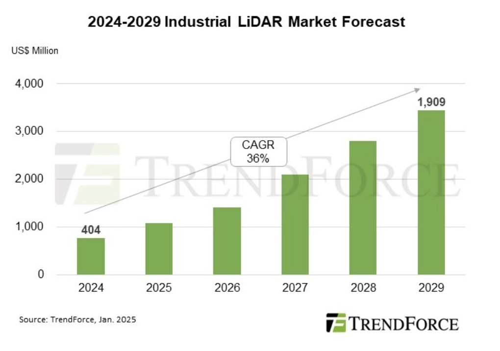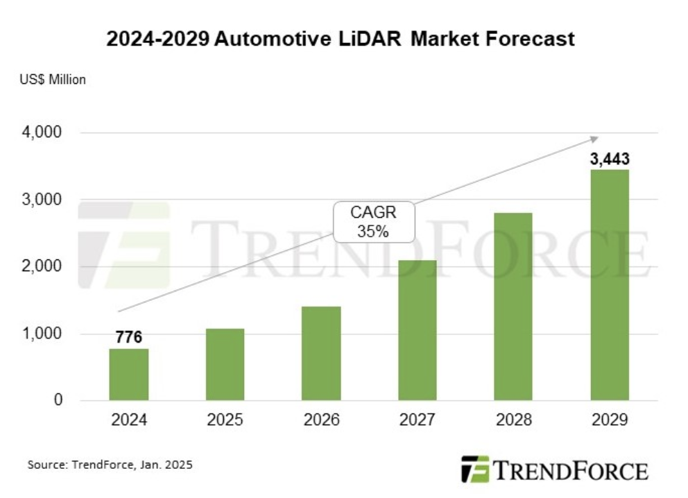 Le marché du lidar devrait progresser de 35% par an pour atteindre 5,3 Md$ en 2029 grâce aux marchés de la voiture autonome et de la logistique[EDITION ABONNES] Le dernier rapport de la société d’analyse de marché TrendForce, intitulé “2025 Infrared Sensing Application Market and Branding Strategies” révèle que la technologie des lidar (systèmes de détection et de télémétrie par ondes lumineuses) gagne du terrain sur les marchés automobiles, notamment les véhicules de tourisme et les robots-taxis, ainsi que dans les applications industrielles telles que la robotique, l'automatisation industrielle et la logistique. Propulsé par les avancées des systèmes de conduite autonome de niveau 3 et supérieur et des solutions logistiques pointues, le marché mondial du lidar devrait ainsi passer de 1,181 milliards de dollars en 2024 à 5,352 milliards de dollars en 2029, soit une progression annuelle moyenne de 35 %. On le sait les constructeurs automobiles intègre de plus en plus de lidar dans les véhicules de tourisme pour permettre des systèmes avancés d'assistance à la conduite et des capacités de conduite autonome de niveau 3. Des marques de premier plan, dont Volvo, General Motors, Audi, Volkswagen, BMW, Hyundai, Hongqi, Changan, Li Auto, AITO, NIO, Toyota et Nissan sont, selon TrendForce, à l'avant-garde de cette transition.