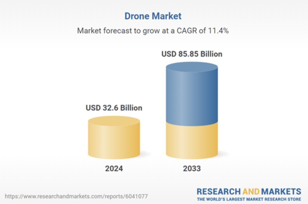 Le marché mondial des drones devrait passer de 32,60 Md$ en 2024 à 85,85 Md$ d'ici 2033[EDITION ABONNES] Selon le document “Drone Market Global Forecast Report by Application, Type, Countries and Company Analysis 2025-2033” publié par la société d’étude de marché researchandmarkets le marché mondial des drones devrait passer de 32,60 Md$ en 2024 à 85,85 Md$ d'ici 2033, soit un taux de croissance annuelle moyen de 11,36 % sur cette période. Selon marketandresearch, les principaux moteurs de croissance sont les drones destinés à la livraison de courses, la photographie, l'intégration des technologies 5G, IoT et de réalité virtuelle sur ces engins volants, avec en toile de fond des politiques gouvernementales de soutien. Désormais les drones, ou véhicule aérien sans pilote (UAV), pilotés et contrôlés à distance ou de manière autonome à l'aide de logiciels et de capteurs avancés, sont équipés de caméras, de capteurs et de GPS. Ce sont donc des outils de plus en plus polyvalents avec des applications dans tous les secteurs de la société : agriculture (suivi de culture, d’irrigation), logistiques (livraison rapide de colis dans des endroits reculés), bâtiments (relevés de chantier, cartographie 3D), média (couverture en direct d’événements), police et défense (patrouille frontalière, recherche et sauvetage en matière de sécurité et de défense). En raison du développement de ces applications, le marché intègre des avancées technologiques, comme la 5G, l’Iot et la réalité augmentée, transformant les drones en systèmes intelligents. Avec une communication en 5G, ils peuvent notamment gérer une transmission de données en temps réel et améliorer le contrôle sur de plus longues distances. L'intégration de l'IoT rend en outre ces drones plus efficaces dans des applications telles que la logistique et la surveillance en améliorant l'automatisation. marketandreseach note à ce suejt qu’en 2024, le suédois Tele2 AB et l’allemand Foodora ont d’ores et déjà lancé des services de livraison de nourriture, en s’appuyant sur la 5G et l’IoT. Parallèlement, marketandreseatch note que les politiques gouvernementales et les soutiens réglementaires jouent un rôle favorables dans l'adoption des drones. Ainsi, de nombreux pays rationalisent les procédures de délivrance de licences, délimitent des zones d'espace aérien spéciales et stimulent l'utilisation des drones dans des secteurs critiques, tels que l'agriculture, la logistique et la gestion des catastrophes. Les gouvernements garantissent également des normes de sécurité et d'autres réglementations en matière de confidentialité des données. Ainsi, marketandreseach note qu’en novembre 2024, le DoD (ministère amércian de la défense), la GSA et la NASA ont révisé le texte FRA (Federal Acquisition Regulation) afin d’interdire l'achat et l'exploitation de systèmes d'aéronefs sans pilote fabriqués par des entités étrangères couvertes par l'American Security Drone Act. Si on regarde par pays, marketandresarch indique que le marché canadien connaît une croissance rapide en raison des avancées dans les domaines de la surveillance agricole, de l’inspections de sites de construction et du suivi de la faune et cartographie des paysages à des fins environnementales, ce qui fait du Canada un épicentre du système mondial des drones. En France, le marché des drones connaît une croissance très forte en raison des progrès technologiques et du soutien du gouvernement dans l’agriculture de précision, la surveillance des sites et la logistique pour les solutions de livraison du dernier kilomètre. marketandresearch note que la France dispose d'un cadre réglementaire très complet supervisé par la DGAC (Direction Générale de l’Aviation Civile) qui soutient l'intégration sûre des drones dans l'espace aérien, rendant le pays ouvert à une utilisation commerciale et récréative. La France se concentre aussi sur l'innovation, ce qui a notamment contribué au développement de drones autonomes et d'analyses fondées sur l'IA, ce qui fait que la France émerge comme un acteur de premier plan sur le marché européen des drones. Les principaux acteurs du marché des drones comprennent AeroVironment, les français Delair et Parrot Drones, Intel Corporation, Boeing Company, AgEagle Aerial Systems, Teledyne FLIR…