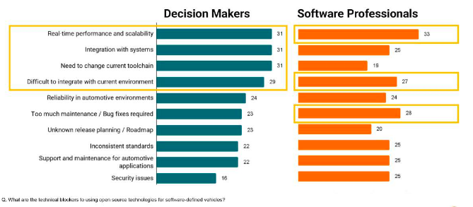Véhicule défini par logiciel : la Fondation Eclipse prône un renforcement du soutien des organimes centrés sur l’open source[EDITION ABONNES] La Fondation Eclipse vient de publier le rapport final de sa série de recherches et d’analyse sur l'utilisation des logiciels open source dans l'écosystème automobile. Intitulé “Challenges Facing Open Source Software in the Automotive Ecosystem” le rapport (*) mené par le groupe de travail sur les véhicules définis par logiciel de la Fondation Eclipse (**) explore les défis auxquels sont confrontés les développeurs et les décideurs lorsqu'ils exploitent les logiciels open source dans le domaine des véhicules définis par logiciel (SDV, Software Definded Vehicle). Selon les résultats de cette étude, les performances, la sécurité et la personnalisation sont les principaux avantages cités apr les répondants concernant l’utilisation de logiciels et d’outils open source. Au-delà, les difficultés liées à l’intégrations de briques logicielles dans un projet et les améliorations dans la durée des performances sont autant d’obstacles techniques qui nécessitent un investissement stratégique de la part des entrprises. De plus, selon les utilisateus interrogés, la planification à long terme, la conformité et la gestion des dépendances ont été signalées comme des domaines critiques nécessitant une surveillance attentive. Alors que les économies de coûts entraînent une augmentation de la valeur commerciale d’un produit, la normalisation et l'interopérabilité entraînent un renforcemnet de la valeur technique, ont indiqué les membres du panel interrogés. A ce niveau, le soutien des fondations renforce la confiance dans les projets intégrant une forte composants de logiciels en open source en apportant les notions de crédibilité, de stabilité, de durabilité et d’orientation pour les développement d’applications open source.