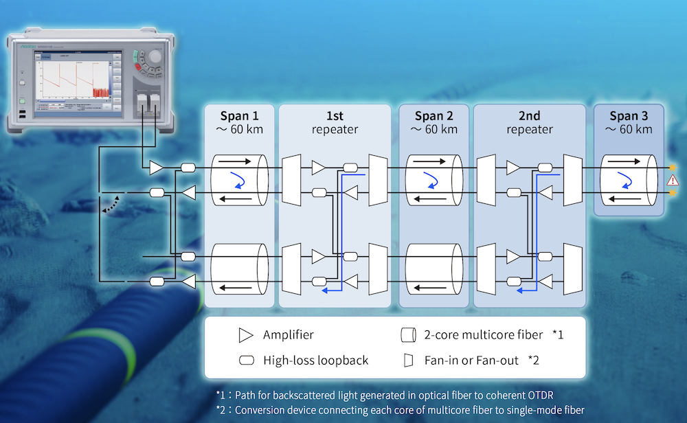 Pour rappel, avec la prolifération rapide des technologies d’intelligence artificiel et d'IoT, le trafic mondial de données devrait continuer à augmenter considérablement, ce qui nécessitera des câbles optiques sous-marins grande capacité pour les communications internationales. Actuellement, les systèmes de câbles optiques sous-marins utilisent des fibres monomodes, qui contiennent un seul chemin optique par fibre. Cependant, face aux contraintes d'espace pour augmenter la capacité avec un seul cœur, l'intérêt pour les fibres qui intègrent plusieurs cœurs indépendants au sein d'une même fibre optique, a augmenté. Cette approche ouvre la voie à une augmentation significative de la capacité de transmission par fibre optique. Actuellement, rappelle également Anritsu, l’exploitation et la maintenance des systèmes de câbles optiques sous-marins utilisant des fibres monomodes reposent sur la technologie OTDR cohérente pour localiser les ruptures de fibre et mesurer les pertes, garantissant ainsi la qualité du chemin optique. Cependant, les fibres multicœurs présentent un facteur de dégradation spécifique, la diaphonie inter-cœurs qui peut affecter la précision des mesures lors de l'utilisation d'un OTDR cohérent. Dans cet essai, les deux sociétés ont étudié si les caractéristiques du chemin optique d'une fibre multicœur pouvaient être mesurées par une technologie OTDR cohérente, de la même manière qu'avec une fibre monomode. Dans un environnement simulé, la lumière de mesure transmise par l'OTDR cohérent MW90010B d'Anritsu se propage à travers la fibre optique multicœur. La lumière réfléchie et diffusée générée dans chaque cœur est ensuite renvoyée vers l'OTDR cohérent pour réception et analyse, permettant ainsi la mesure des caractéristiques du chemin optique. De plus, l'exploitation des résultats de mesure de l'OTDR cohérent a également confirmé la mesure de la répartition de la diaphonie intercœur le long de la fibre, y compris à,travers les répéteurs. Il s'agit, selon Anritsu et KDDI, de la première visualisation réussie au monde de la diaphonie intercœur sur de longues distances. Les deux entreprises dévoileront ces résultats lors de la 51e Conférence européenne sur les communications optiques - ECOC 2025 - la conférence internationale sur les communications optiques au monde, qui se tient au Danemark du 28 septembre au 2 octobre 2025.
