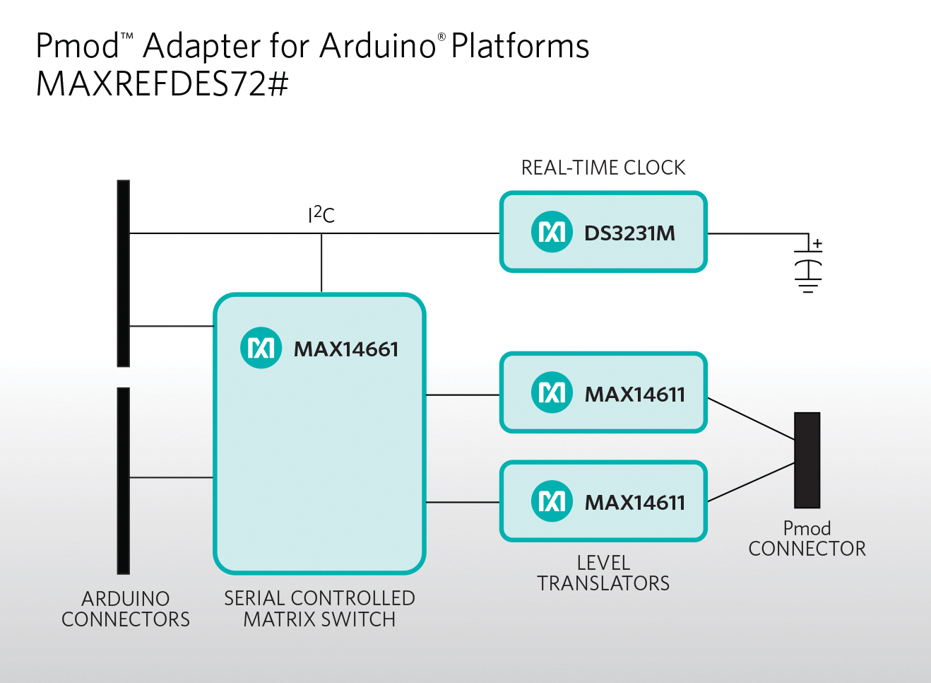 Maxim apporte le monde analogique des modules Pmod à l’écosystème ArduinoTraditionnellement utilisé pour connecter des périphériques analogiques à des prototypes bâtis sur des plates-formes FPGA, le format de module Pmod plaît de plus en plus aux développeurs de l’écosystème Arduino. ...Afin de répondre à leurs attentes, Maxim Integrated propose sous la référence MAXREFDES72 un adaptateur qui permet de brocher n’importe quel type de carte dotée de connexions Pmod à une plate-forme Arduino, classiquement bâtie autour d’un microcontrôleur. On rappellera à cet égard que Maxim dispose déjà à son catalogue de quinze modules à fonction unique et de treize cartes de référence équipés de connecteurs Pmod qui, du coup, deviennent accessibles à un large éventail d’applications… « Arduino est un écosystème de développeurs ARM majeur et en plein essor, commente Dominic Pajak, stratégiste en électronique embarquée chez ARM. Les composants de détection de haute qualité de Maxim vont venir enrichir les options offertes aux développeurs focalisés sur le domaine des dispositifs connectés et de l'Internet des objets. » La carte-adaptateur de référence Pmod de Maxim est proposée au prix de 25 dollars.