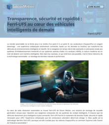 Dans ce white paper en français, Silicon Motion explique comment de manière didactique et illustrée la technologie de stockage intégrée Ferri-UFS qui combine un contrôleur avec une mémoire Flash NAND standard, fournit le traitement de données fluide, sécurisé et rapide nécessaire pour offrir l'expérience embarquée que les conducteurs attendent désormais.