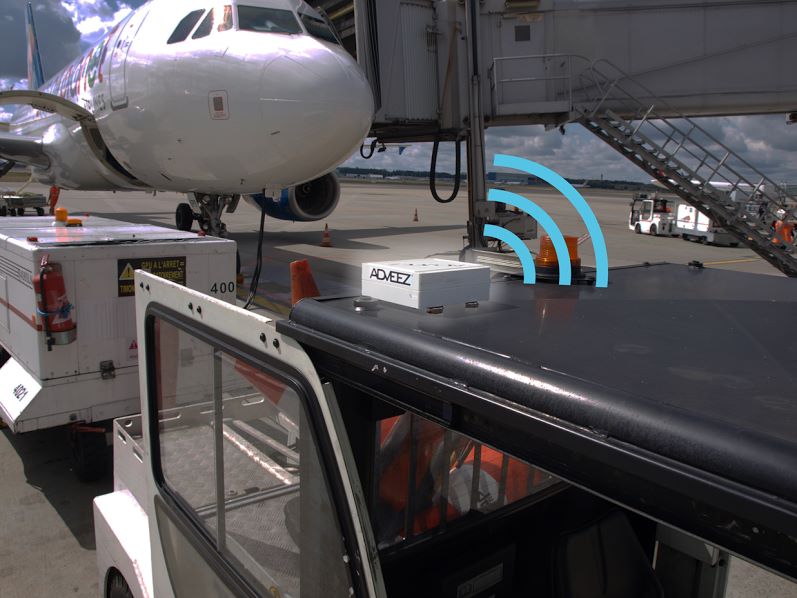 Un boîtier de contrôle Adveez monté sur un véhcule aéroportuaire