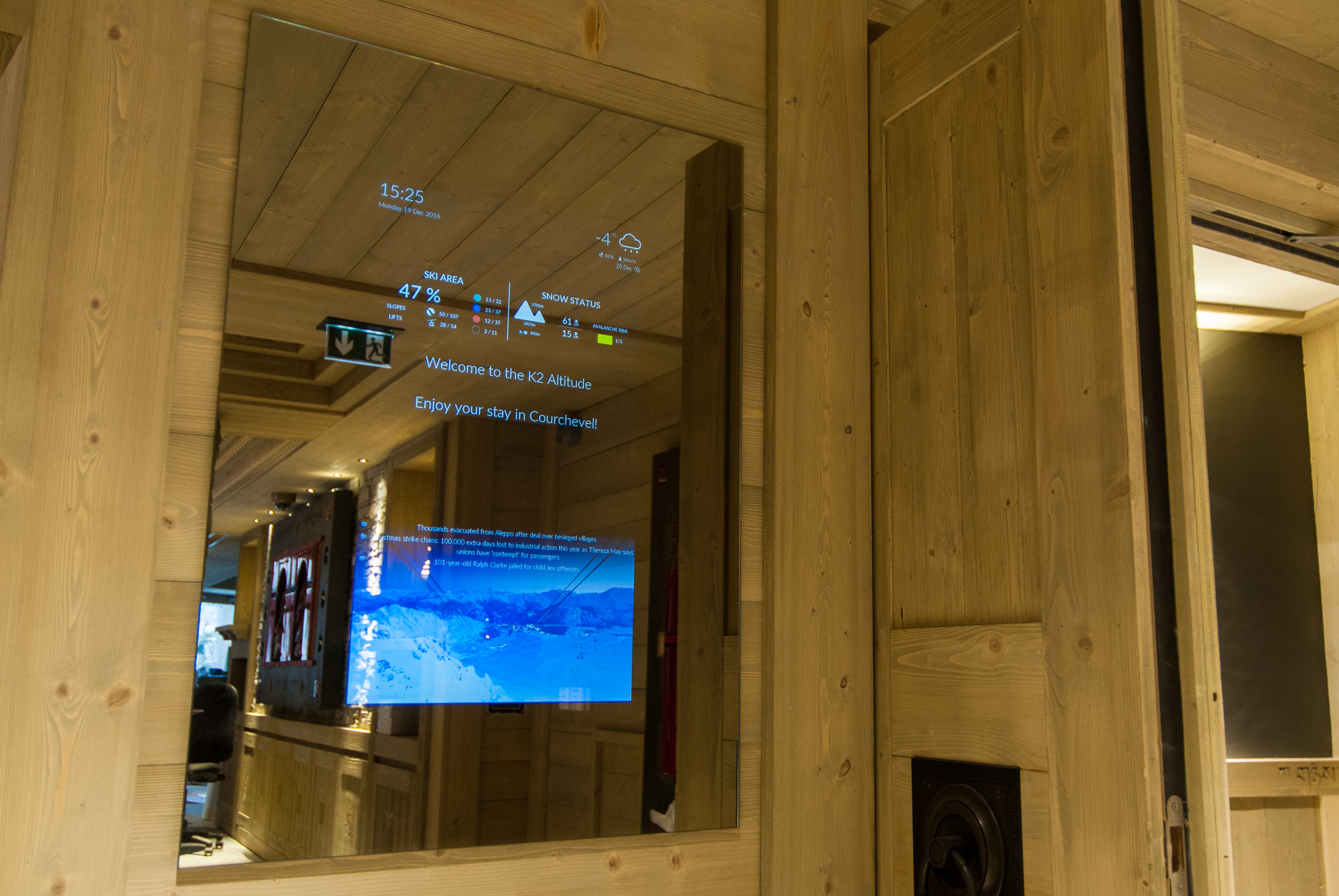 Pour montrer dans un premier temps ses compétences, AirNodes a développé de A à Z un objet original, un miroir connecté en l'occurrence. Destiné au secteur hôtelier, aux restaurateurs, aux organisateurs de salons, ce miroir est conçu comme un support d’informations en temps réel. Constitué d’un dalle LCD insérée derrière le verre d’un miroir sans tain (avec un rétroéclairage spécifique), et associé dans un châssis en inox à une carte électronique, des capteurs et le système d’alimentation, le miroir affiche des informations interactives en direction de l’utilisateur : météo, activités du jour dans un hôtel, état de l’enneigement sur telle ou telle piste dans des stations de sports d’hiver, etc. L’interface est définie par l’utilisateur via un environnement de développement à base de widgets graphiques (horloge, zones de texte…) que l’on peut assembler sur une matrice prédessinée. La connexion du miroir se fait soit à travers un lien Ethernet filaire, soit par le biais d’un lien Wi-Fi. Ainsi, à distance, via cette plate-forme, il est possible d’afficher un message personnalisé, par exemple dans chaque chambre d’un hôtel.