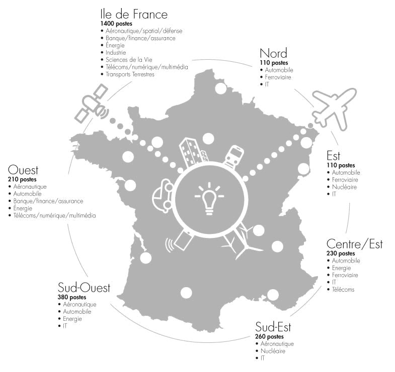 La société d’ingénierie et de conseil en technologies Alten compte recruter 2 700 ingénieurs en CDI sur toute la France en 2016, un nombre en progression de 10% en un an. Et 50% de ces futurs collaborateurs auront ...moins de 26 ans. Alten explique cette vague de recrutement par le dynamisme de ses activités (12,4% de croissance sur le premier semestre 2015) et l’afflux de projets qui se manifestent dans toutes les régions de l’Hexagone (voir illustration ci-dessous).
