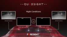 L’israélien Foresight Autonomous, spécialiste des systèmes de vision pour l’automobile, a montré lors du salon CES de janvier 2018 un système de vision innovant, baptisé QuadSight, architecturé autour de quatre caméras. ...Présenté comme le plus précis de l'industrie par ses concepteurs, le système procure une détection d'obstacles de haut niveau grâce à l’association de quatre caméras, une paire de caméras infrarouges et une paire fonctionnant dans le visible pour obtenir in fine une vision stéréoscopique de l’environnement d’un véhicule autonome ou semi-autonome. QuadSight est conçu, selon la société, pour atteindre près de 100% de détection d'obstacles avec zéro fausse alerte dans toutes les conditions météorologiques ou d'éclairage : obscurité totale, pluie, brume, brouillard, éblouissement…