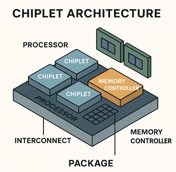 Rappelons qu’un chiplet est une puce spécialisée conçue pour être combinée à d'autres puces dans un même boîtier, afin que le dispositif final se comporte comme une seule puce. Au lieu de construire un SoC (System On Chip) monolithique, les concepteurs répartissent les fonctions de calcul, d’entrées/sorties, d’interfaces mémoire… puis les assemblent par des liaisons inter-puces à haut débit. L’idée sous-jacente est d’obtenir un meilleur rendement en production, une réutilisation accrue des fonctions unitaires et la possibilité d'intégrer chaque fonction au nœud de gravure le plus adapté.