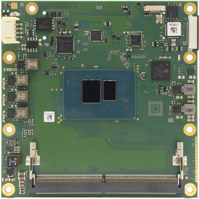 L’un des éléments clés de la réduction de taille est l’absence de tout connecteur de module et l’utilisation à la place d’un boîtier de type LGA. Cela implique la soudure du module COM sur sa base, ce qui limite les possibilités de mise à niveau sur site, mais offre une meilleure résistance aux chocs et aux vibrations.