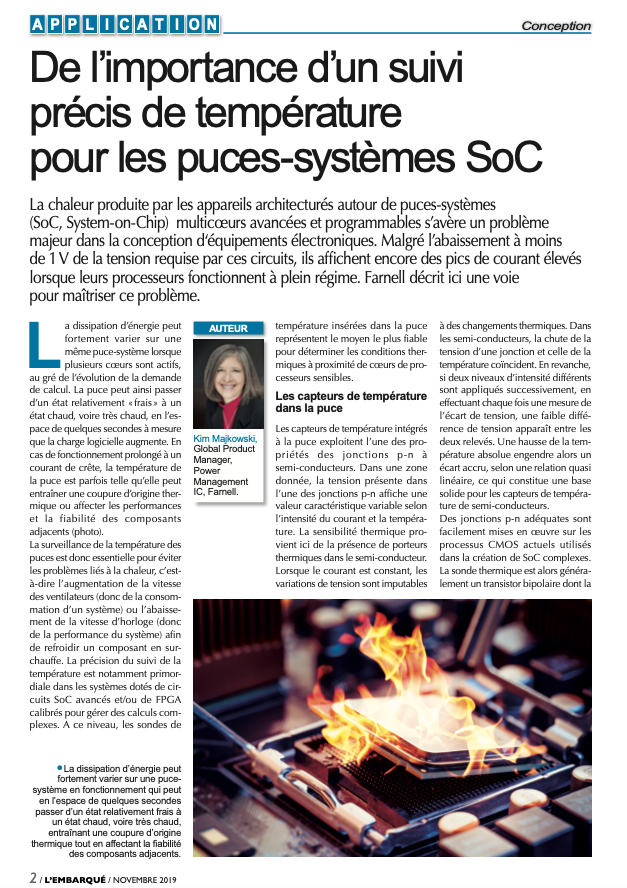 De l’importance d’un suivi précis de température pour les puces-systèmes SoC, un article de Kim Majkowski, Global Product Manager, Power Management IC, chez Farnell, un article à lire au format PDF ici.