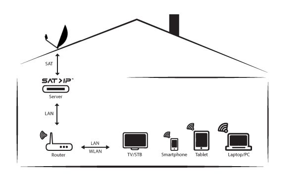 Développée par SES avec le concours de BSkyB et de l’éditeur danois Craftwork, la technologie SAT-IP définit un protocole de communication entre un « serveur », qui démodule les signaux satellite et les convertit en flux IP, et des « clients » consommateurs des contenus diffusés. Le protocole s’avère indépendant du support physique utilisé pour distribuer les flux dans les lieux d’habitation et peut donc être déployé tel quel sur des infrastructures résidentielles de type Ethernet, CPL (Courants porteurs en ligne), fibre optique plastique ou Wi-Fi.