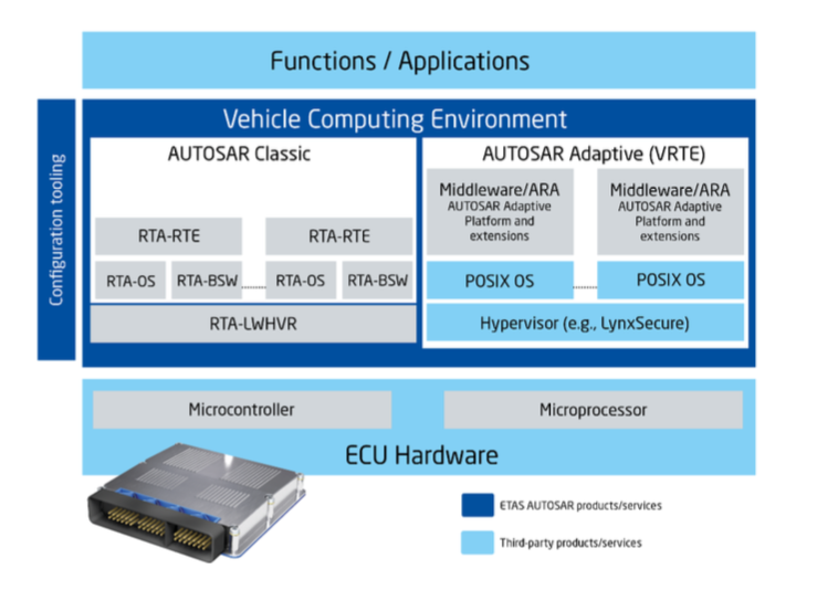 Avec le programme intitulé Early Access Program, la firme allemande Etas (filiale de Bosch), qui fournit des briques matérielles et logicielles pour les systèmes embarqués dans les automobiles, a pour ambition d’aider les utilisateurs à déployer plus rapidement la norme Autosar Adpative, ...parfois complexe à mettre en œuvre dans un cycle de développement de code embarqué au sein des ECU (Electronic Control Unit) des véhicules. Pour ce faire, le framework de base RTA-VRTE d’Etas (développé par Bosch) est associé à un programme de services et de formation qui, selon la société, doit permettre aux développeurs d’entrer immédiatement et de manière efficace dans le développement d’applications de mobilité connectée et de systèmes de conduite automatisée, tout en se conformant aux exigences en matière de sécurité fonctionnelle et de cybersécurité.