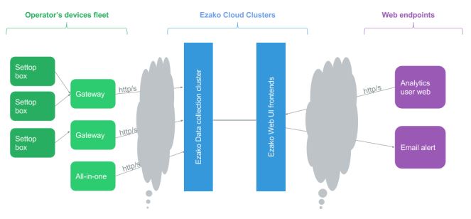 Côté cloud, Ezako dispose d’outils analytiques qui permettent de filtrer, d’agréger et d’analyser de manière graphique et visuelle toutes ces données avec remontée d’alertes et possibilité de naviguer dans l’historique. « Depuis cette année, nous avons intégré dans notre portefeuille un outil d’analyse prédictive qui peut prévenir l’opérateur, en avance de phase, de l’arrivée de pannes et ce à échéance comprise entre un jour et quelques mois, ajoute le vice-président ventes et marketing d’Ezako. Cet outil; qui est issu d'un partenariat de R&D d'un an avec le Cnes, a obtenu une reconnaissance officielle lors du salon IBC 2016 d’Amsterdam où il s’est vu décerner le trophée Future Business Opportunity. C’est un point fort qui nous distingue de la concurrence et qui éveille un fort intérêt chez les opérateurs télécoms. » Si la jeune société ne souhaite pas pour le moment citer explicitement les noms de ses premiers clients, on compte toutefois dans la liste un opérateur français majeur, un éditeur hexagonal bien connu d’environnements logiciels pour box triple play et « d’autres opérateurs à l’international ».