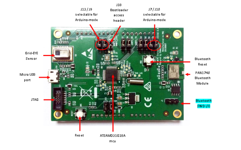 L’objectif est de cibler les développeurs d'pplications de détection sans fil avec une carte qui intègre, outre le capteur Mems IR de Panasonic, un module Bluetooth LE (Low Energy) basse consommation (moins de 5 mA en transmission et en réception) de cette même société (modèle PAN1740) et un microcontrôleur 32 bits (un ATSAMD21G18A d’Atmel architecturé sur un coeur ARM Cortex-M0+ cadencé à 48 MHz).