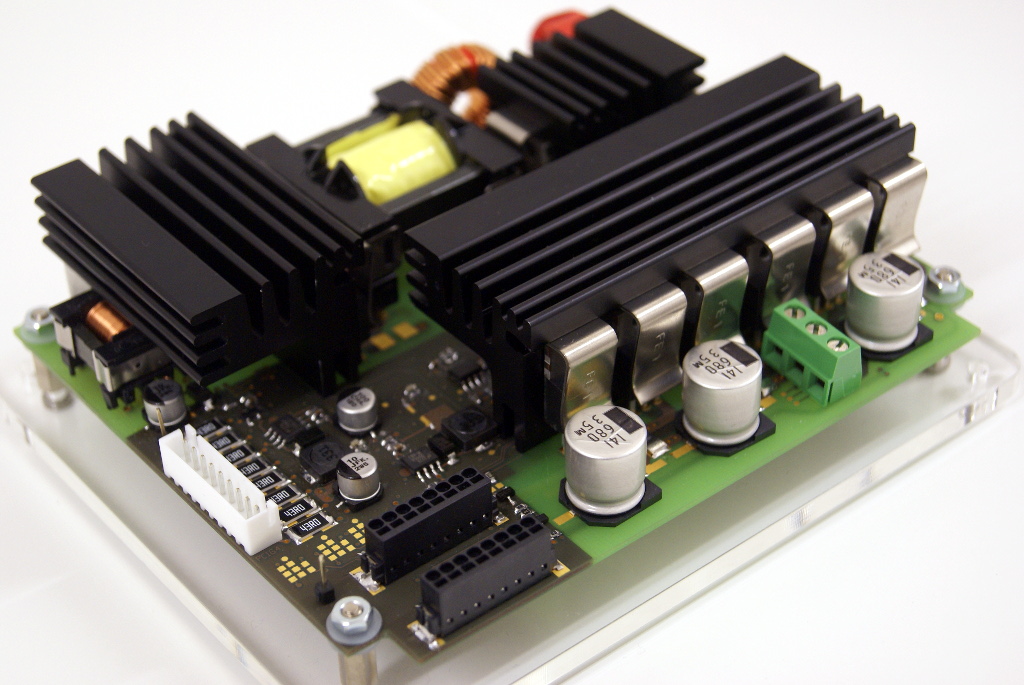 Côté logiciel embarqué, on trouve un algorithme de démarrage spécifique permettant d'obtenir un couple maximal à des vitesses angulaires très faibles et ce sans à-coups. Une fonctionnalité primordiale pour un moteur sans transmission. Au-delà, un limiteur de vitesse garantit une vitesse maximale avec des variations souples du couple moteur tout en minimisant la consommation électrique. Enfin un gestionnaire de batterie permet de gérer la puissance de rechargement en fonction de son état de charge.