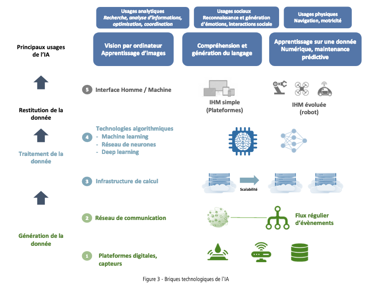 Cette étude montre que l’IA pourrait représenter de réelles opportunités pour la France, à condition qu’elle encourage son développement. Pour cela, le rapport formule plusieurs recommandations pour, d’une part, favoriser la création de jeux massifs de données et faciliter l’accès à ces données aux acteurs économiques, et d’autre part soutenir le développement d’expertises nationales en IA.