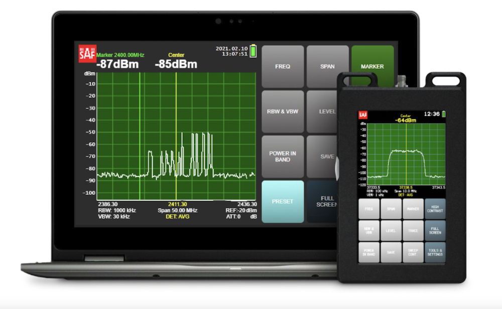 Passer du concept d’instrument portable à celui d’appareil ultraportable, telle est la proposition de la société lettone SAF Tehnica, basée à Riga, avec un analyseur de spectre de 6 GHz à 20 GHz dont les dimensions sont de seulement 135 x 83 x 34 mm pour un poids de 570 g !... Avec cet appareil, SAF Tehnika élargit sa famille d'analyseurs de spectre millimétrique portables et ultraportables qui comprend notamment des analyseurs de spectre portables en bande E (70-87 GHz) et en bande V (56-71 GHz).