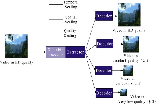 SHVC (Scalable High efficiency Video Coding) vise typiquement les applications qui requièrent l’encodage de plusieurs versions d’un programme vidéo à des niveaux de qualité différents. En pratique, ce standard permet d’encoder simultanément plusieurs versions d’une vidéo, organisées en couches afin d’optimiser le flux binaire et de réduire la bande passante par rapport à des approches traditionnelles de type simulcast (diffusion simultanée mais en parallèle de plusieurs programmes codés différemment).