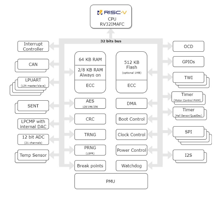 Ce microcontrôleur, dont le coeur obéit au jeu d'instructions RISC-V RV32IMAFC, est particulièrement bien adapté aux besoins des applications de détection et de commande de petits moteurs, affirme Cortus.