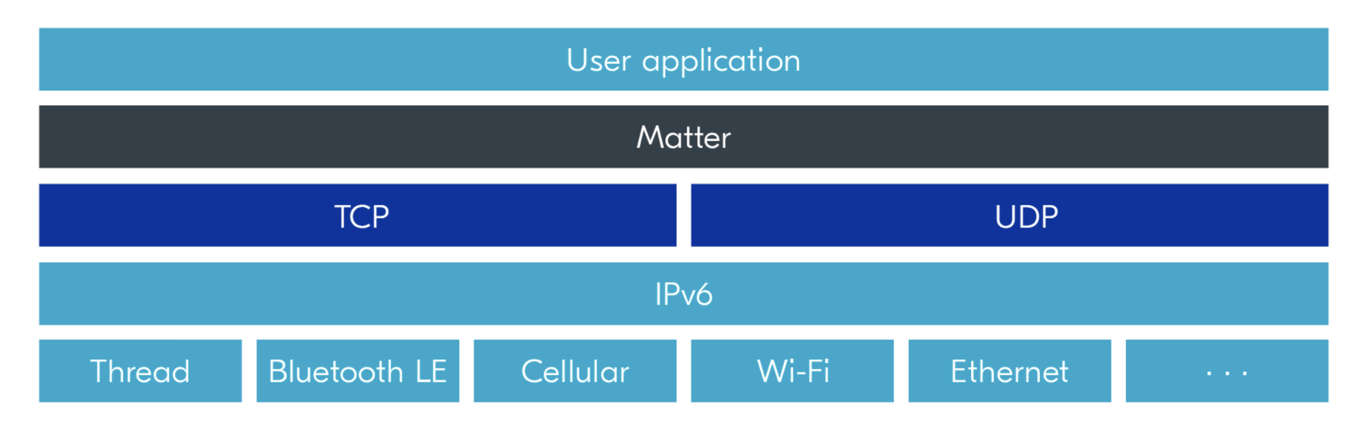 La couche application Matter simplifie de fait la communication des appareils Thread avec un réseau Wi-Fi domestique et de là avec le cloud.