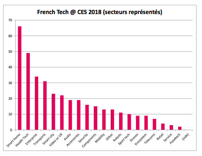 En 2018, la French Tech est donc la 3e délégation du CES derrière les Etats-Unis et la Chine, la 1re délégation européenne et surtout la 1re délégation étrangère en nombre de start-up présentes sur Eureka Park. Ainsi sur les 800 jeunes sociétés exposant sur cet espace, les 274 start-up de la French Tech vont côtoyer les jeunes pousses des Etats- Unis (280 start-up), loin devant celles venant des Pays-Bas (60 start-up) ou de la Chine (55 start-up). La French Tech accroît de ce fait sa présence de plus de 50 % sur cet espace par rapport à 2017 avec en parallèle la présence en arrière-plan de grands groupes qui misent sur le dynamisme de ces pépites pour accélérer leur réflexion et leur développement dans le domaine des objets connectés (au sens large du terme) : La Poste, Engie, Valeo, Legrand, STMicroelectronics, Orange, BNP Paribas…