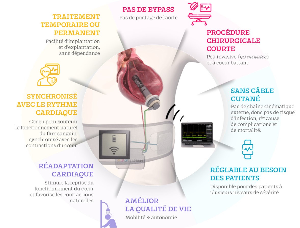 Créé en 2010, FineHeart, qui vient de lever 20 millions d'euros, est une société́ française de dispositifs médicaux basée à Pessac (33) qui développe un système implantable de restauration du débit cardiaque pour répondre aux besoins non satisfaits des patients souffrant d'insuffisance cardiaque sévère. Le système, baptisé ICOMS FLOWMAKER, repose sur une conception disruptive d’une pompe miniature, mais aussi sur des algorithmes de pilotage implantés dans les parties logicielles du dispositif qui fournit à la pompe son intelligence de fonctionnement. Selon FineHeart, dans les deux ans qui suivent l'implantation d'un LVAD classique (dispositif d'assistance au ventricule gauche), 80% des patients développent aujourd'hui une complication sévère qui les rend dépendants de leur dispositif. FineHeart se positionne ici pour proposer un standard du traitement de l’insuffisance cardiaque sévère, avec des études précliniques finalisées depuis juin 2021.