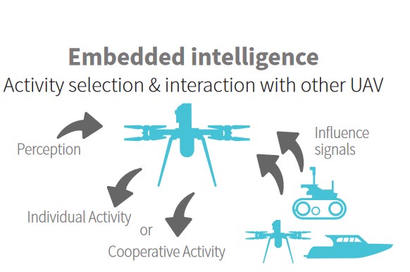 EZ-Chains de Scalian est une solution logicielle générique, modulaire et agnostique vis-à-vis du matériel, permettant à une flotte hétérogène de vecteurs ou agents (drones à multiples rotors ou voilure fixe, drones roulants, robots, capteurs intelligents) de coopérer pour réaliser des missions complexes nécessitant l’agrégation des compétences entre acteurs - couverture de zone, recherche, surveillance, logistique, opération en continu, lutte antidrone, etc. La solution a été mise en œuvre en juin 2021 pendant deux semaines consécutives dans des conditions opérationnelles, avec une flotte de six drones de 35 kg chacun dans le but de larguer 4 000 capteurs sismiques dans des conditions de sécurité́ garanties et conformes aux exigences des autorités de régulation, dans le cadre du programme Metis de Total.