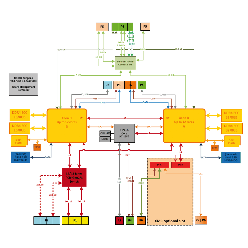 Côté caractéristiques notoires, la plate-forme propose jusqu’à 128 Go de mémoire DDR4 (avec ECC), un FPGA Kintex-7 UltraScale de Xilinx et jusqu’à 7 ports Gigabit Ethernet (dont deux 1000Base-T en face arrière)
