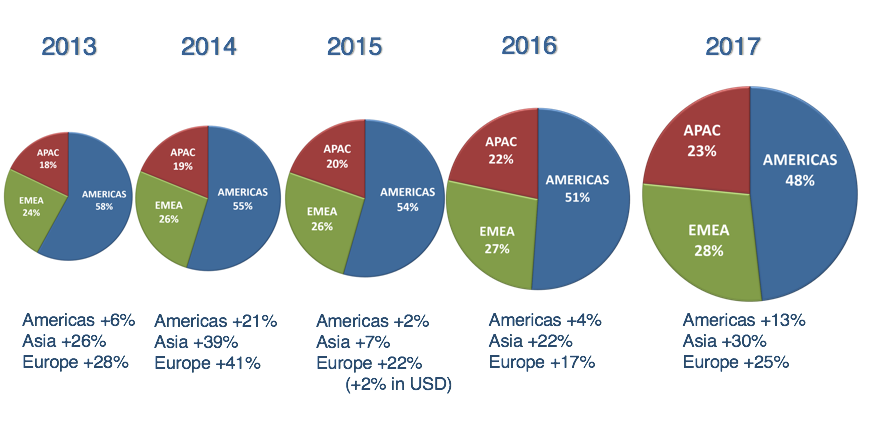 Dans la zone EMEA, détaille Mark Burr-Lonnon (photo ci-contre), Mouser a dépassé sur quatre trimestres consécutifs ses objectifs de croissance d’un trimestre à l’autre. Conséquence, le vieux continent représente aujourd’hui plus de 29 % du chiffre d’affaires mondial de l’entreprise qui est d’environ 1 milliard de dollars, la zone EMEA y contribuant à hauteur de 320 millions d’euros.