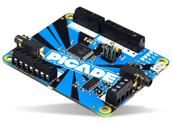 Mouser stocke également le Pimoroni Picade PCB (photo ci-contre), une carte compatible Arduino conçue pour être utilisée dans des projets de jeux d'arcade. Intégrant un microcontrôleur ATmega32U4 de Microchip, la carte est livrée avec le chargeur de démarrage Arduino et le logiciel Pimoroni préinstallés. Les contacts à bornes à vis permettent aux ingénieurs d'ajouter un joystick à quatre directions et jusqu'à 12 boutons, ainsi que deux haut-parleurs de 4 ohms pilotés par un amplificateur intégré 3 W.