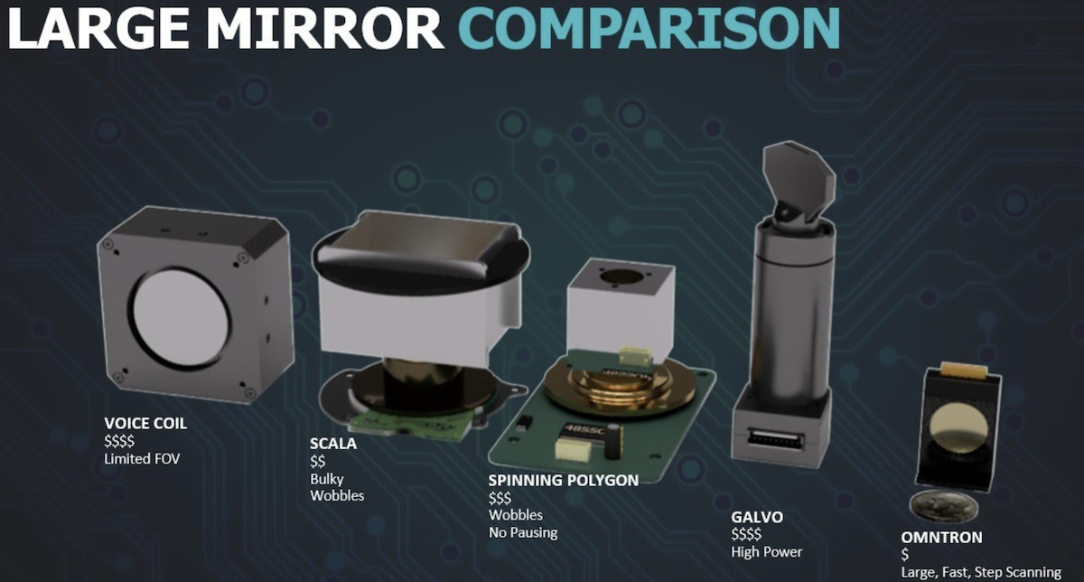 Ciblant le marché des sous-systèmes lidar qui, selon la société d’études Yole Intelligence, devrait atteindre 2,3 milliards de dollars d'ici à 2026, le miroir Mems fixe d'Omnitron produit un champ de vision 2 à 3 fois plus grand que les autres miroirs classiques utilisés dans les lidars longue portée fondés sur des miroirs rotatifs.
