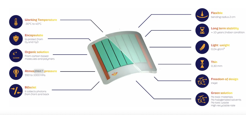 Pour rappel, les modules OPV multiformes de Dracula sont produits par impression à jet d'encres photoactives organiques conductrices sur des supports flexibles qui peuvent prendre n’importe quelle forme et s'adapter à n’importe quel objet IoT, même de petite taille. L’énergie produite à partir de la lumière ambiante naturelle ou artificielle, même dans des conditions de faible luminosité (moins de 50 lux), élimine de fait le recours à des piles ou batteries. Ce qui va dans le sens de l’histoire.
