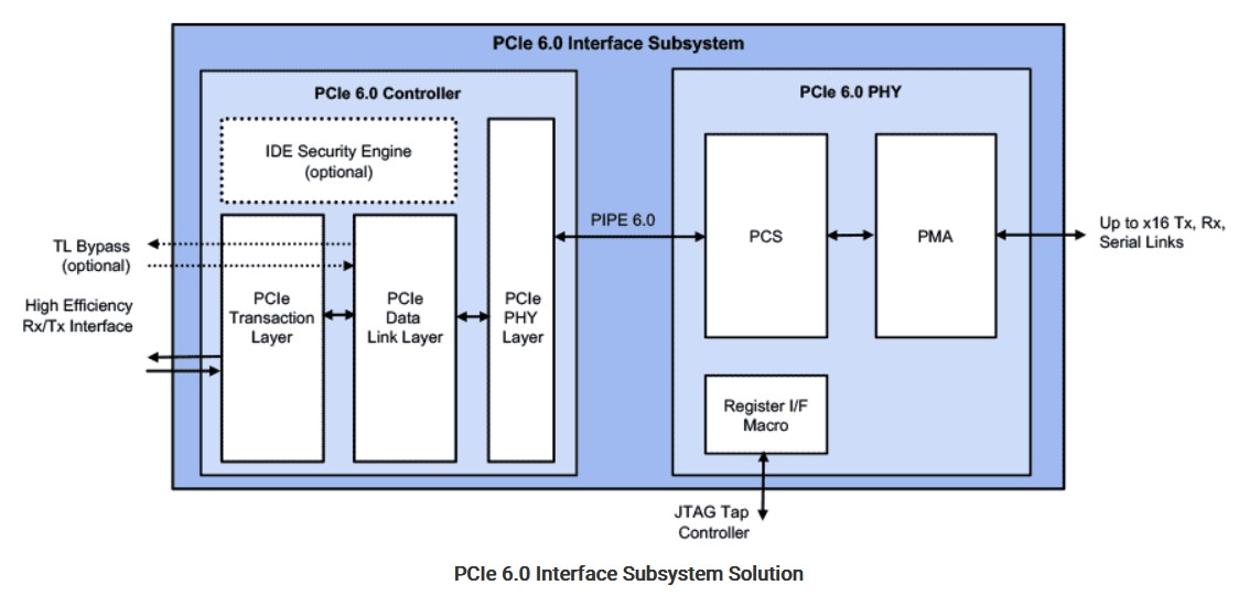 Parmi les autres caractéristiques du sous-système d’interface PCIe 6.0 de Rambus, on citera la rétrocompatibilité avec les spécifications PCIe 5.0, 4.0 et 3.0/3.1, un codage FEC (Forward Error Correction) à faible latence pour assurer la robustesse des liaisons, et la prise en charge de la structure fixe de paquets pour l’échange de données Flit (Flow Control Unit), destinée à assurer une meilleure efficacité dans l’utilisation de la bande passante.