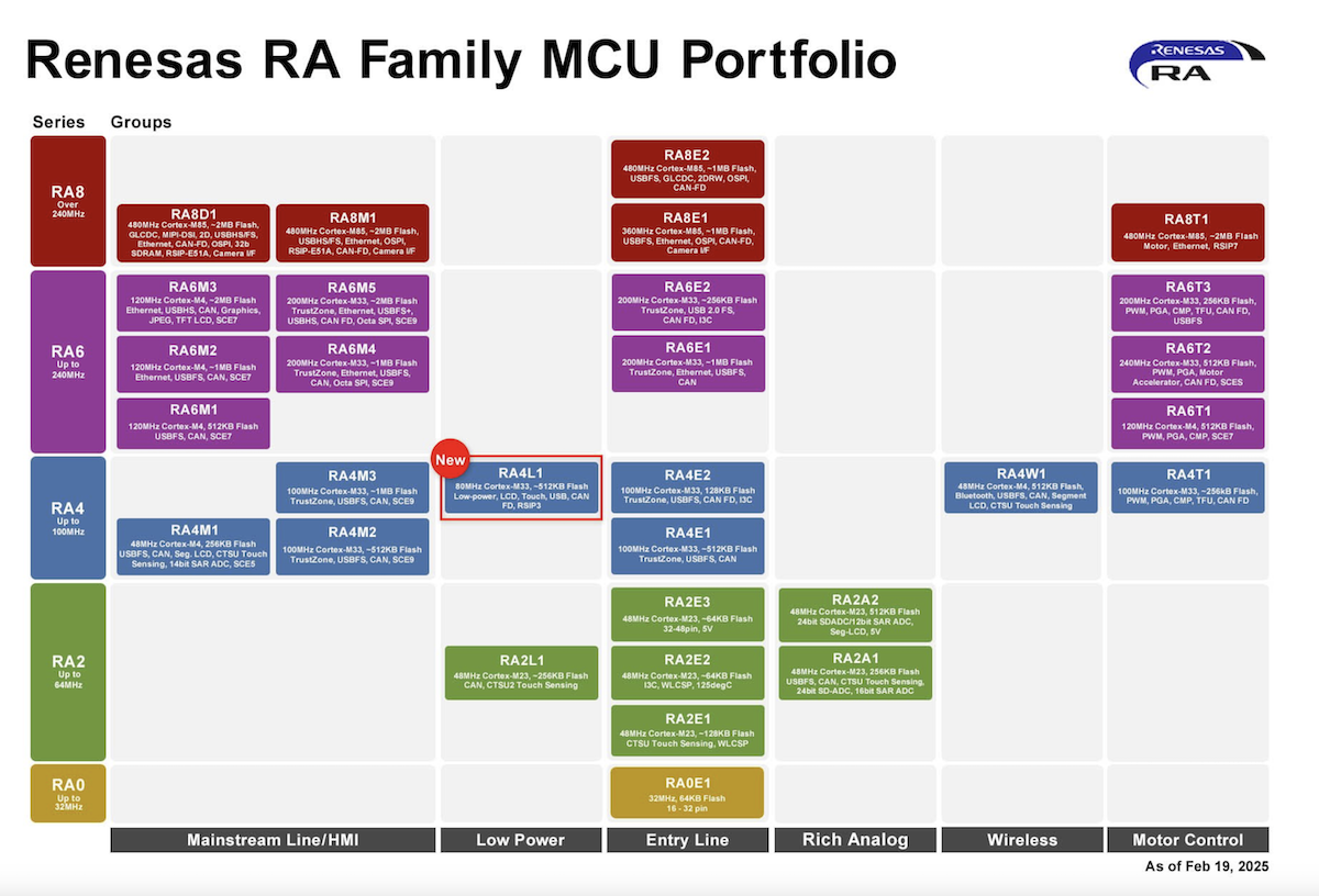 « Les microcontrôleurs groupe RA2L1 de Renesas ont connu un succès important sur le marché depuis leur lancement en 2020, commente Daryl Khoo, vice-président de la division marketing des processeurs embarqués chez Renesas. Ils répondent à une gamme diversifiée d'applications à faible consommation nécessitant le support d’écrans capacitifs. Fondé sur la même base technologique à faible consommation, le groupe RA4L1 cible les utilisateurs qui souhaitent combiner ultra-faible consommation, support d’écrans LCD segmentés et une sécurité avancée. »