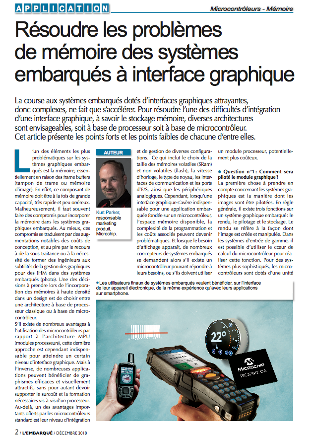 Résoudre les problèmes de mémoire des systèmes embarqués à interface graphique, par Kurt Parker, responsable marketing produits chez Microchip, un article au format PDF à télécharger ici.