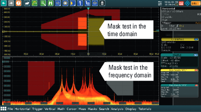 Sur ces appareils, un système de déclenchement innovant par zones assure une séparation des données sur l’écran, dans les domaines fréquentiel et temporel. Il est possible de définir jusqu’à huit zones de forme polygonale, et le déclenchement, horodaté, est activé selon une combinaison logique définie par l’utilisateur dès qu’un signal “rencontre” la ou les zones définies, quelle que soit leur forme. Une approche qui permet par exemple, selon Rohde & Schwarz, de mieux détecter des perturbations spectrales ou d’analyser plus finement des cycles de lecture/écriture sur des unités de stockage.