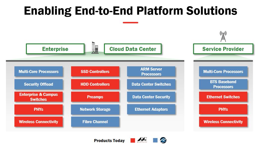 Selon Marvell, la combinaison des portefeuilles produit des deux sociétés, jugé complémentaires, doit permettre de fournir des solutions de bout en bout sur les marchés des centres de données dans le nuage, des entreprises et des fournisseurs de services. On se souviendra aussi que Cavium est depuis 2009 la maison mère de l’éditeur américain MontaVista, focalisé sur les distributions Linux embarqués pour le marché des télécoms et réseaux, du médical, de l'Internet des objets industriel et de la bureautique.